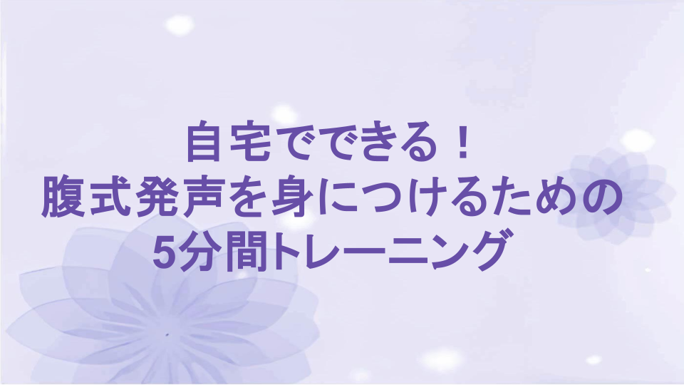 プロの歌手や声優が使っている「腹式発声」は、自宅で・たった5分のトレーニングでも習得可能なんです。